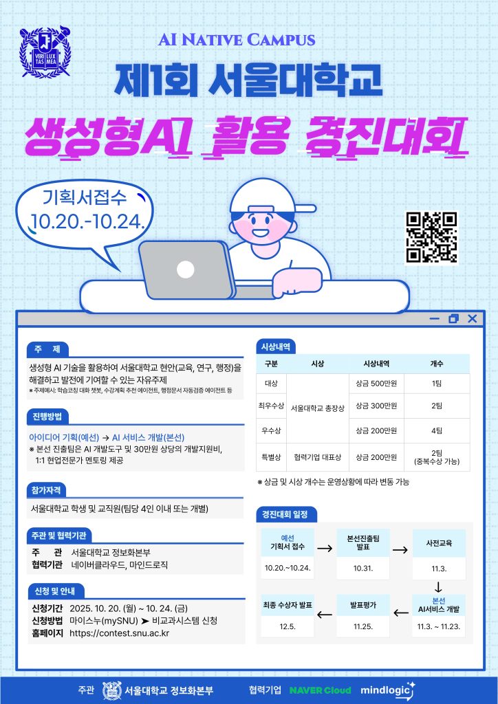 「제1회 서울대학교 생성형AI 활용 경진대회」를 실시합니다.