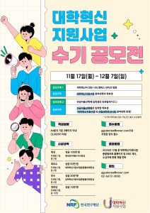 한국연구재단에서는 대학혁신지원사업 및 전공자유선택제와 관련하여 「대학혁신지원사업 수기 공모전」을 개최합니다.
